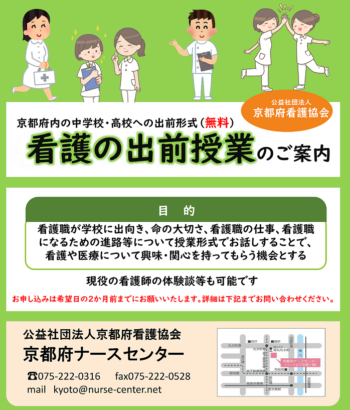 『看護の出前授業』についてのお問い合わせは、京都府ナースセンターまで