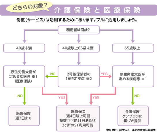 *状態が悪くなり(急性増悪期)、病状が不安定でひんぱんに訪問看護が必要な方は医療保険で訪問看護を利用することがあります。