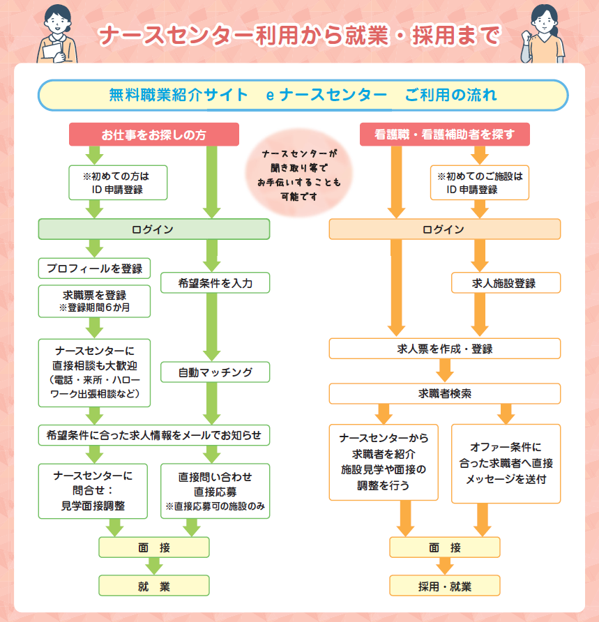 看護協会の登録がなくても、求人施設及び求職者が利用できる無料職業相談所です。