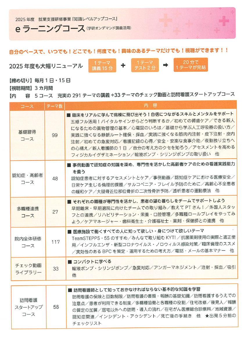 | 研修名 | 知識レベルアップコース eラーニング研修 |